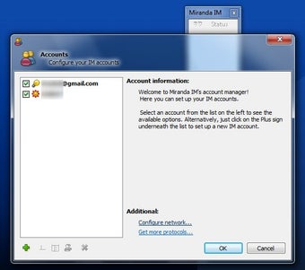 Po zainstalowaniu programu, Miranda IM prosi o podanie haseł, których używasz w kolejnych obsługiwanych komunikatorach. Jeśli chcesz założyć konto w którejś z sieci, możesz to zrobić klikając odnośnik w programie. Kreator konfiguracji pobiera listę Twoich kontaktów z serwera lub z plików oryginalnego komunikatora danej sieci. Możesz też ręcznie dodać swoich znajomych, jeśli taka lista jest niedostępna.
